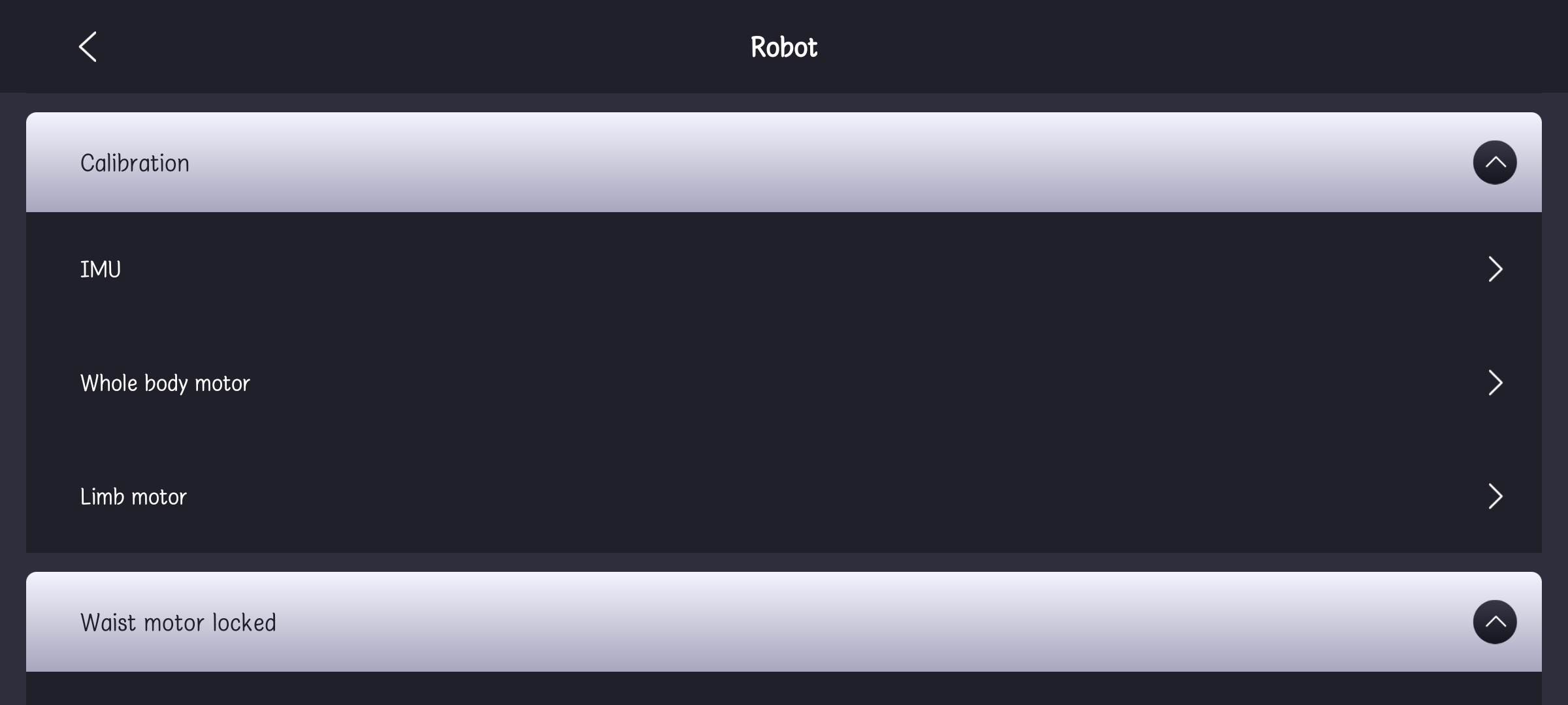 로봇의 걸음이 이상하거나 모터가 오작동할 경우, 앱 안내에 따라 Calibration을 진행합니다.